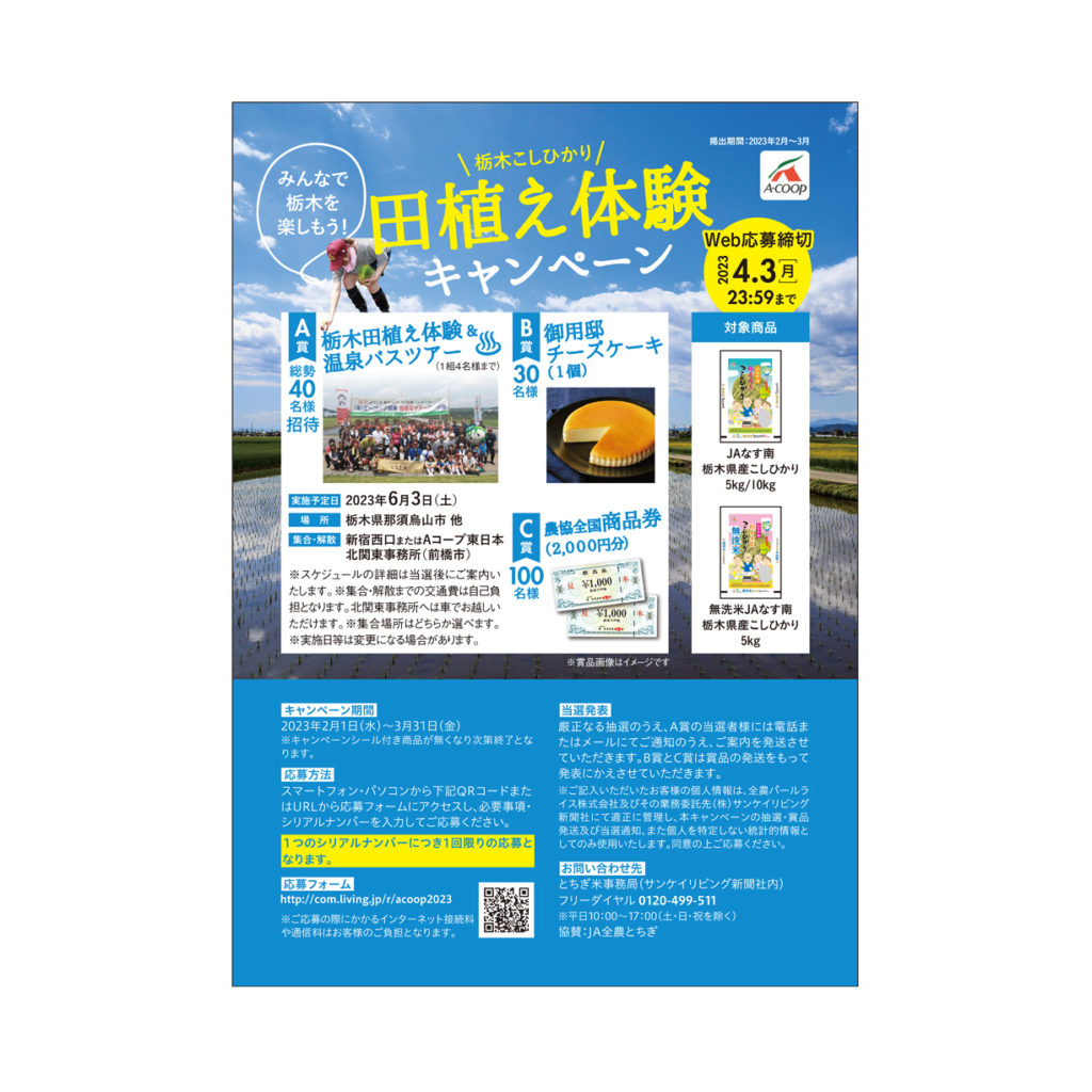 Aコープ_JAなす南栃木県産コシヒカリ田植え体験キャンペーン2023
