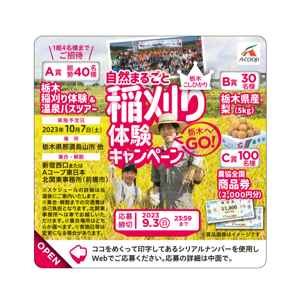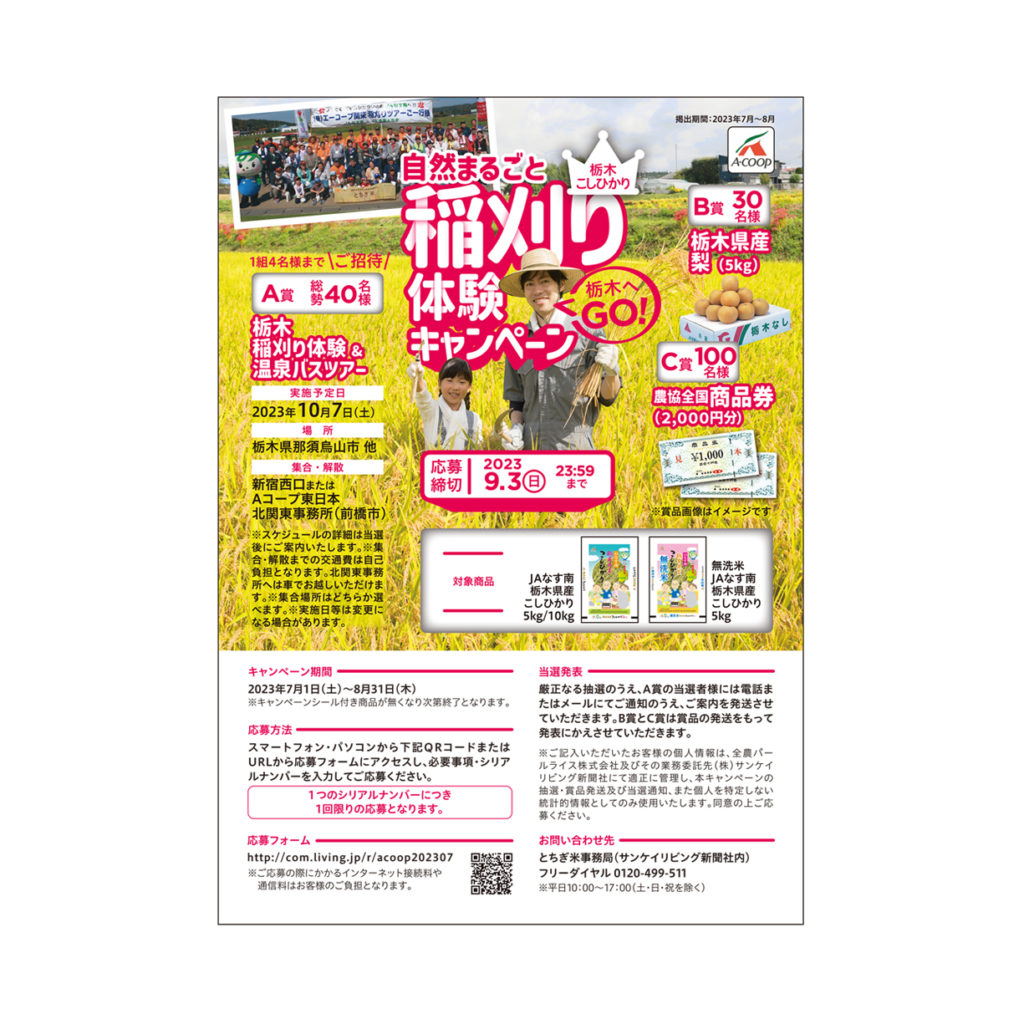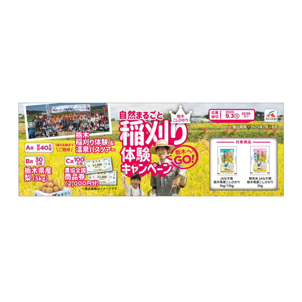 Aコープ_JAなす南栃木県産コシヒカリ稲刈り体験キャンペーン2023