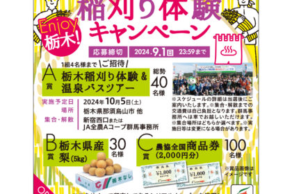 Aコープ_JAなす南栃木県産コシヒカリ稲刈り体験キャンペーン2024