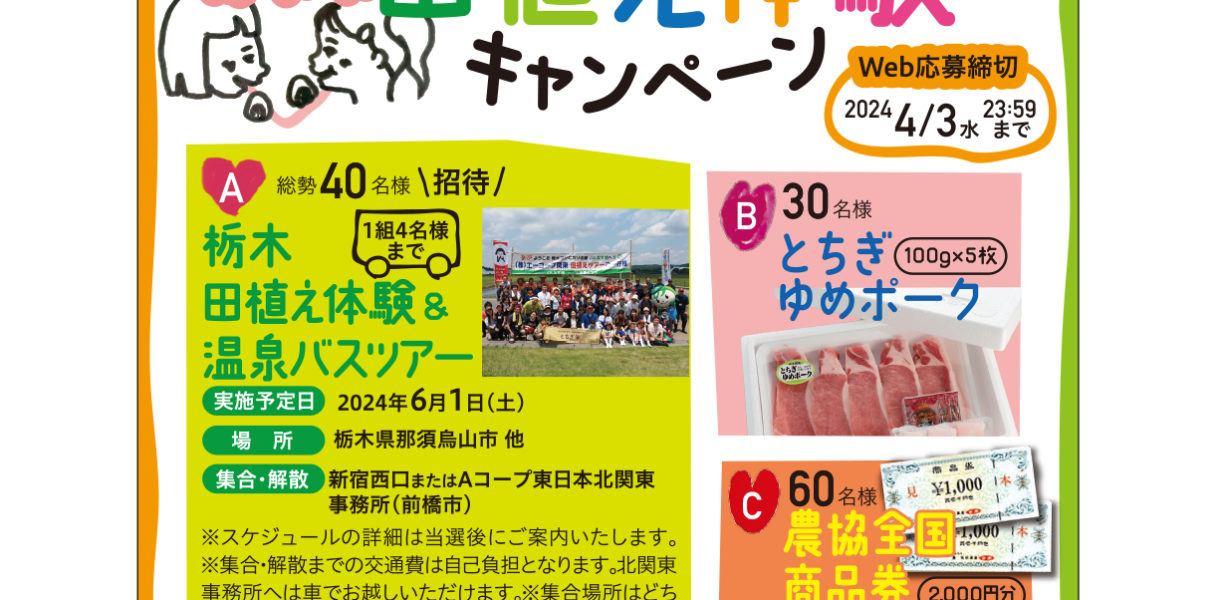 Aコープ_JAなす南栃木県産コシヒカリ田植え体験キャンペーン2024