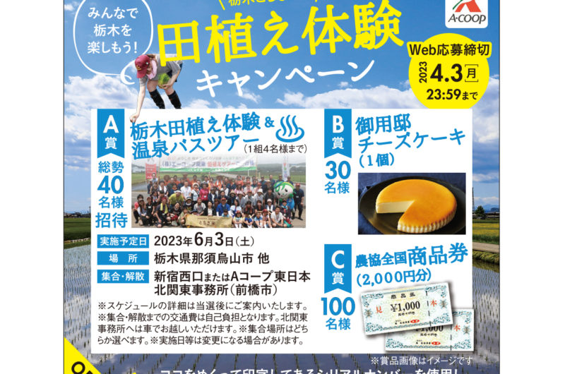 Aコープ_JAなす南栃木県産コシヒカリ田植え体験キャンペーン2023