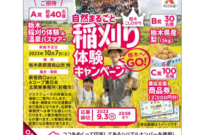 Aコープ_JAなす南栃木県産コシヒカリ稲刈り体験キャンペーン2023